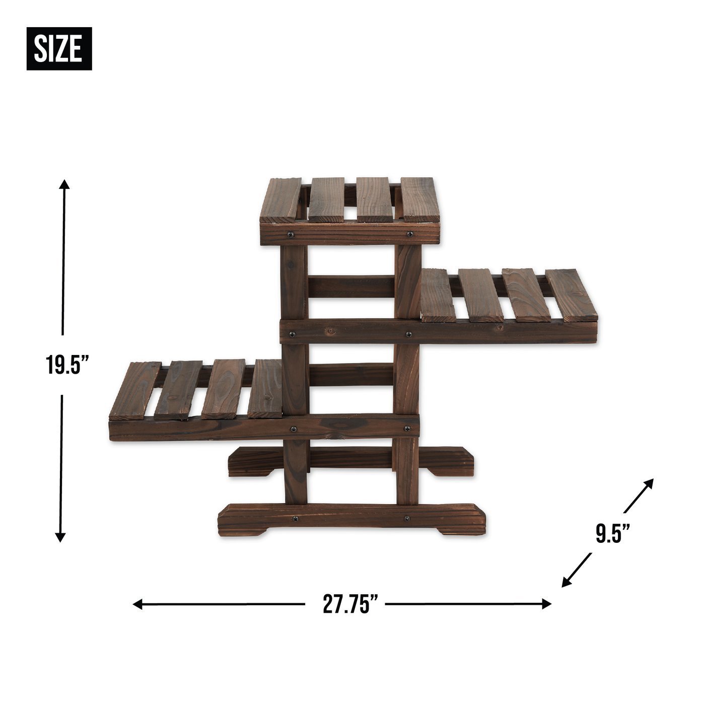 • The plant stand weighs 4.4 lbs. and measures 27.75x9.5x19.5 inches.