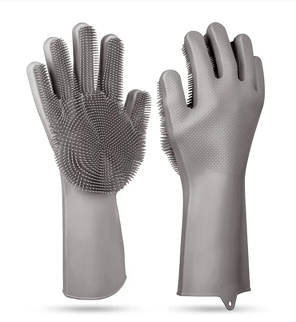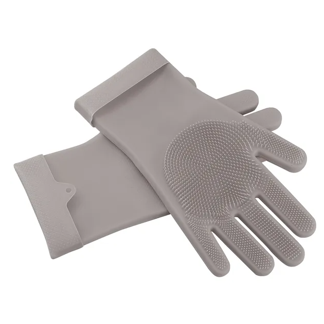 1 Pair Magic Silicone Brush Dishwashing Gloves Cleaning Sponge Pet