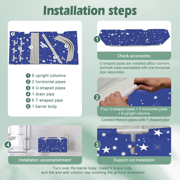 Easy to Use: Assembly and disassembly are simple and quick, and can be done in less than 5 minutes, without the need to pump in air like most plastic bathtubs