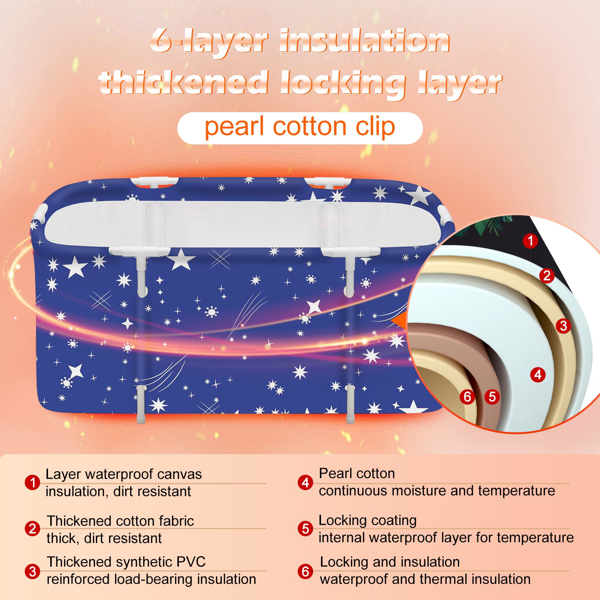 Premium Materials: Our foldable tub is made of 6 layers of premium thick fabric material. High density insulation material is used to resist cold air and enhance insulation effect