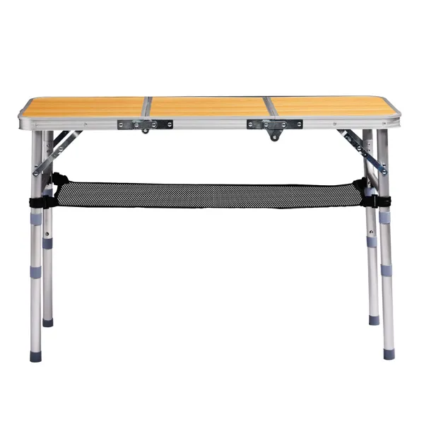Enjoy convenience and versatility anywhere with this Folding Camping Table. Designed with 3 adjustable height settings, this portable aluminum table adapts to your needs—whether as a low coffee table, a standard patio side table, or a taller utility table. Its foldable design with a built-in carry handle makes it easy to transport for camping, picnics, beach trips, BBQs, and more. A durable aluminum frame ensures long-lasting performance while staying lightweight, and the mesh net shelf underneath adds handy storage for keeping essentials close by.